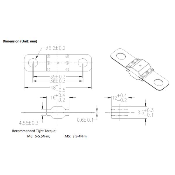 The Electric Vehicle Fuse is an essential component of your electric vehicle, as it provides protection to your vehicle's power system against overloading and short circuits. The fuse is compatible with various terminal types, including small fork plugs and car fuses. The product's mounting method is Screw M6, M8, making it easy to install and replace.
