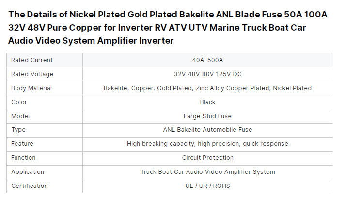 - Application Scenarios: EV Energy Storage Charging, Trucks, 30A 40A 50A 60A 80A 100A, Audio Fuse